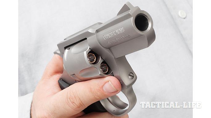 Charter Arms Pitbull .45 ACP: Charter Arms’ new Pitbull fires the rimless .45 ACP cartridge, providing a reliable backup that pairs well with your big-bore semi-auto. After firing, the shooter can easily eject the spent cartridges for immediate reloading. The Pitbull features a 2.2-inch barrel, Neoprene grips and a five-shot capacity. The stainless steel frame has a matte finish, and the revolver weighs only 22 ounces unloaded. For more information, visit charterarms.com or call 203-922-1652.