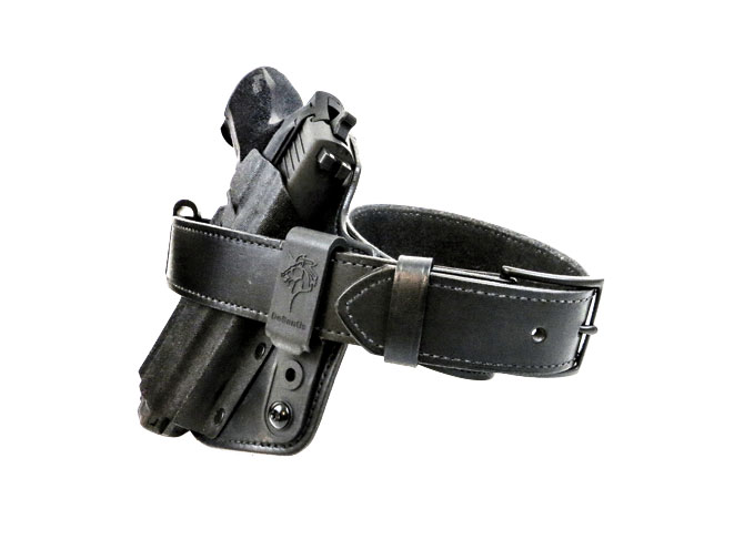 The DeSantis Inner Piece holster has long been a go-to IWB holster for 1911s. I like the leather snap loops and the old-school saddle leather. A stabilizer wing built into the back of the holster keeps a 1911 in position. I also like the reinforced mouth so I can reholster a 1911 with one hand. I use a Galco SB3 Dress Belt with the Inner Piece when I dress business casual with khakis or wool slacks. The 1.5-inch-wide Galco looks smart, and since the belt is rigid, it can carry the weight of a 1911 and look ready for the 10:00 a.m. standing meeting.
