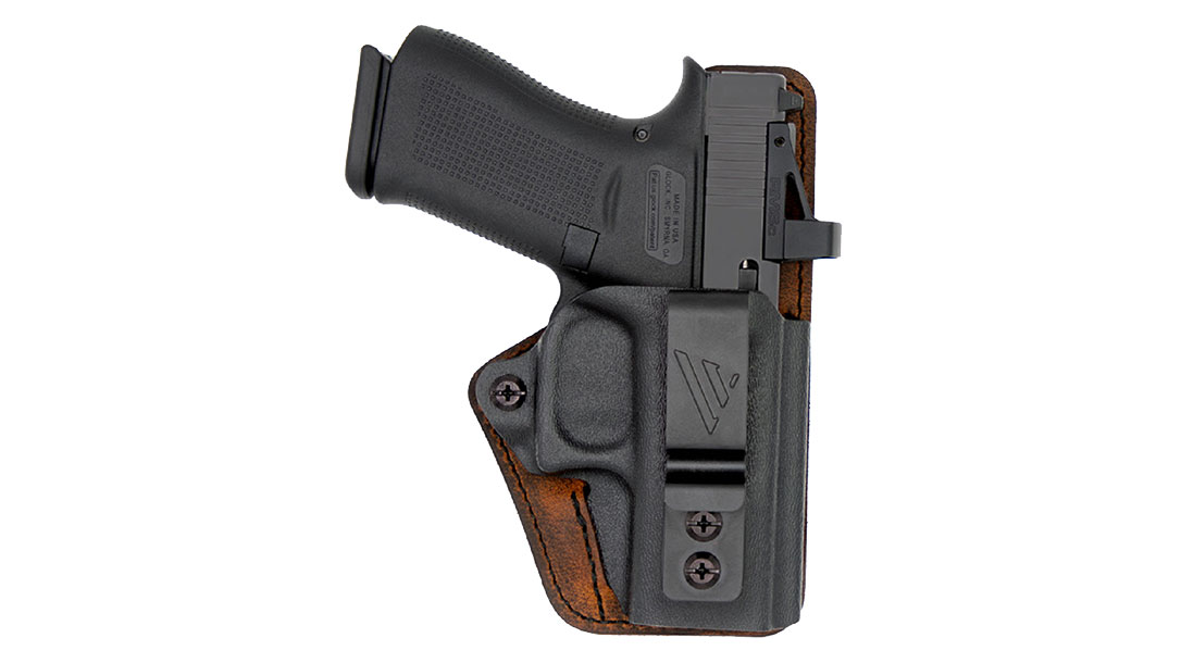 Fitting top carry gun models including (but not limited to) the Glock 43, Sig Sauer P365, Taurus GX4, and more, this holster from Versacarry features the best of both worlds. Combining high-end buffalo leather with familiar kydex, the wearer has the ultra-comfortable feel of leather against the skin. Correspondingly, the robust kydex is exposed on the exterior outward-facing portion of this holster.