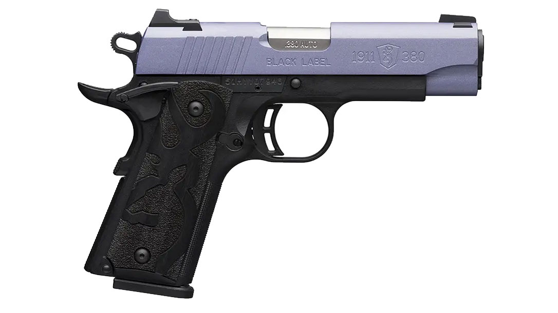 Browning has breathed new life into its small yet mighty 1911 chambered in .380 with a new batch of Cerakote slide finishes. Pictured here is the crushed orchid finish, with other color options, including copper and polar blue. As with the standard 1911-380 Black Label previously released, each handgun comes equipped with fixed 3-dot sights, extended beavertail to help prevent slide bite, skeletonized hammer, and ambidextrous safety control.