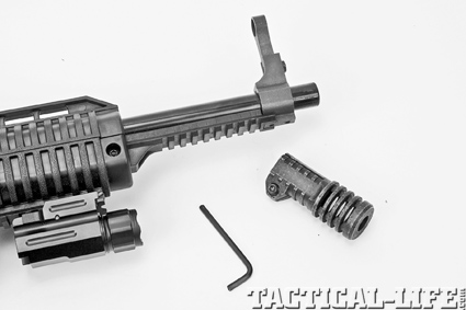 The Hi-Point’s compensator bolts on with a single Allen screw.