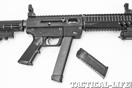 Hi-Point carbines load through the pistol grip using the company’s proprietary 10-round magazines.