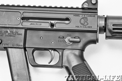 The JR Carbines’ trigger, pistol grip, and safety lever are pure AR-15, proving to be very ergonomic.