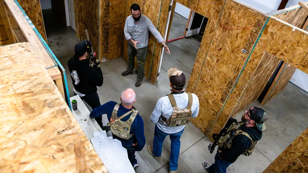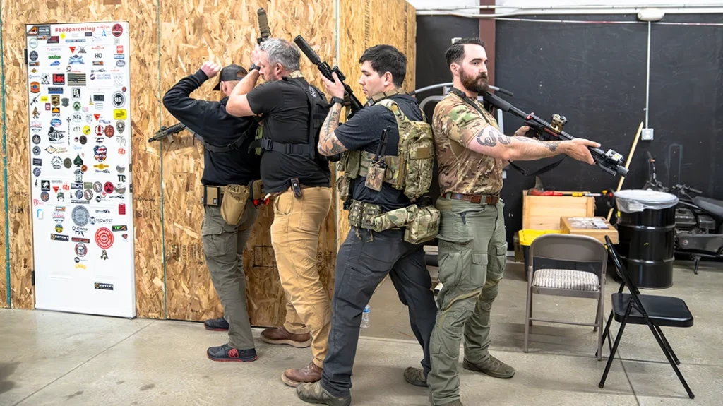 After locking down safety protocols, we cycled between a single clearing room attached to the classroom. Then we’d shuffle into the shoot house to put the newly learned techniques into practice.