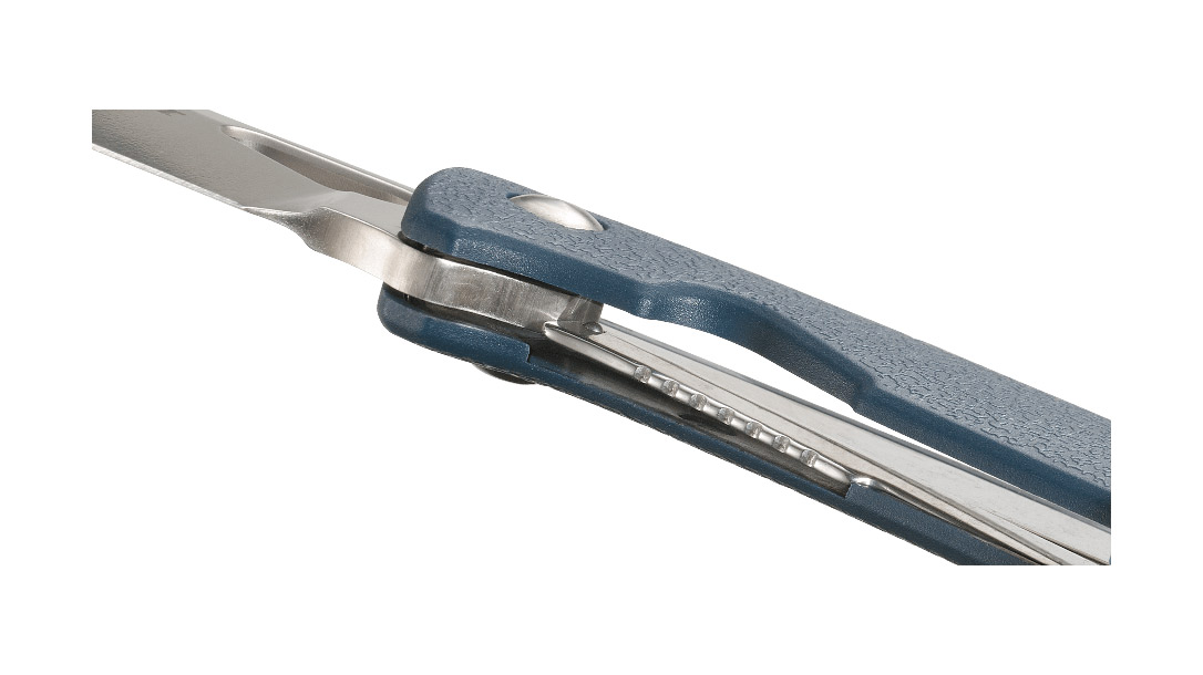 The 2.69-inch drop point blade of the Piet features a satin finish and flat grind. The glass-reinforced nylon handle has received the blue colorway treatment, offering an exclusive finish. The D2 tool steel is an upgrade from the 8Cr13MoV of the original and provides greater wear resistance and toughness. This little EDC knife comes in at only 3.76 inches closed and features a deep-carry pocket clip, keeping it discreet. An oversize thumb hole deploys the blade, which locks firmly in place with a liner lock.