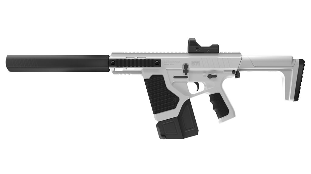 The look of the ST-1 harkens images of Starship Troopers or the like. It comes in a futuristic white on black, featuring tactical-style grips. From tin cans to airsoft targets, the ST-1 should provide loads of training or fun.