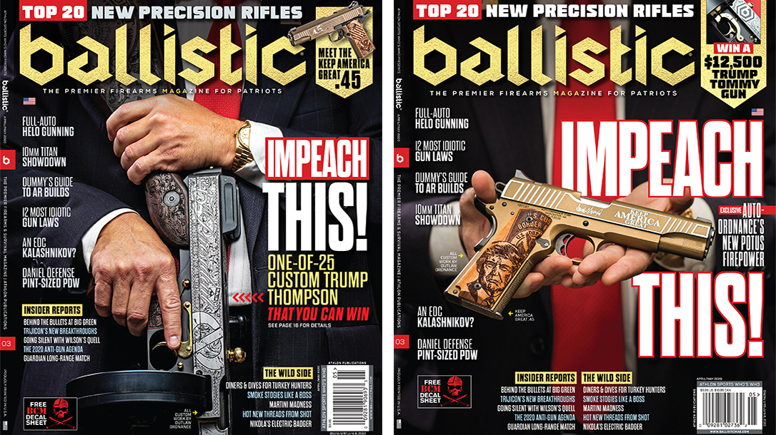 That’s why we decided to reach out to Nacho and Cheeto about this epic “Custom Challenge.” We wanted to create a special “Presidential Thompson” in honor of Donald J. Trump for the cover of Ballistic, but Auto-Ordnance and Outlaw Ordnance took it a step further. They said, “Hell, let’s do a limited run of 25 of these guns. Ballistic magazine can give No. 1 away to one lucky reader!”
