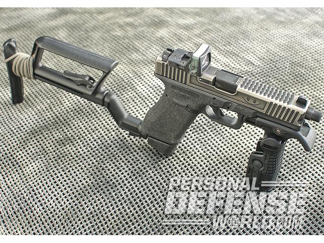 There’s an old Shaker axiom that says, “Let it be plain and simple, of good and substantial quality, unembellished by any superfluities which add nothing to its goodness or durability.” This is something I keep in mind when I set up a weapon. A few months ago, I took a hard look at what I was carrying to deal with an active killer. Such attacks are now our present truth, and we need to recognize that the war is no longer over there—now it’s over here. I took a hard look at the fact that rifles, and even conventional submachine guns, just weren’t as concealable as I’d like. Even if you get into the really small SMGs, you’re still talking about considerable size, weight and cost. I also wanted this weapon to be able to use the same magazines as my Glock 17. Lastly, I wanted the weapon to use “off the shelf” technology so I wouldn’t have to struggle to find replacement parts. With that in mind, I settled on another G17—with a unique twist.