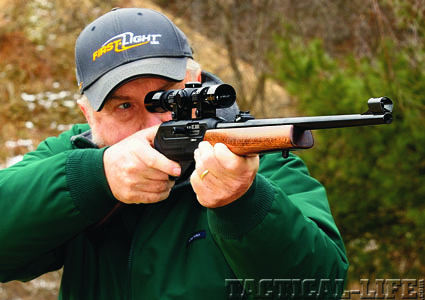 The gun came up naturally; the scope’s reticle was centered at eye level for fast targeting.