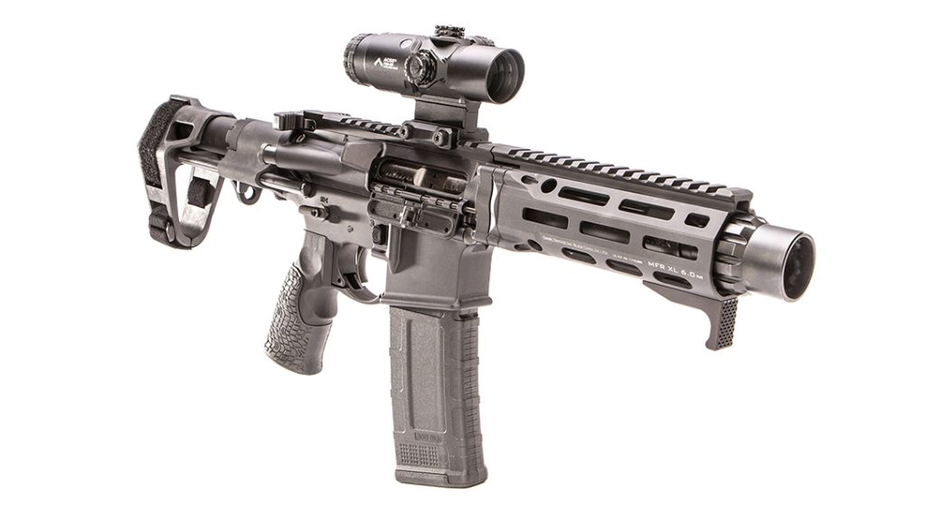 Surrounding the barrel and pistol-length gas system is a 6-inch MFR XL handguard made from 6061-T6 aluminum with a flat front end, a full-length top rail and M-LOK slots along the sides and bottom, making the gun easy to customize with accessories. Because the barrel is so short, Daniel Defense includes an SLR MOD2 hand stop to prevent your support hand in a safe position.
