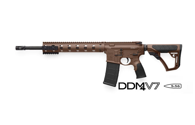 A variation of Flat Dark Earth, the Mil-Spec+ finish is currently available on four different rifles: the DDM4v7, Mk18, M4A1, and v5LW. The DDM4v7 is chambered in 5.56mm NATO and features a 16-inch, cold hammer forged, chrome moly barrel. It also includes a 12-inch modular float rail, as well as a new buttstock and pistol grip with a soft touch rubber overmolding. See additional specs on the DDM4v7 below. Click here, here and here for more on the Mk18, M4A1, and v5LW.