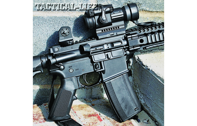 As previously mentioned, the SSP is offered as a complete package that comes with the DD fixed sights, three Magpul 30-round PMAGs, three low-profile rail ladders and a Blue Force Gear Vickers Combat Applications sling. In 2012, Daniel Defense upgraded its law enforcement packages and partnered with Aimpoint. The SSP comes with the superb Aimpoint Patrol Rifle Optic (PRO). The PRO offers a 2-MOA dot that provides four night-vision settings and six daylight settings. A single CR1/3N lithium battery provides power while advanced circuitry gives the PRO a runtime of three years of continuous use on a daylight setting. An integral QD mount and lens covers are also standard.