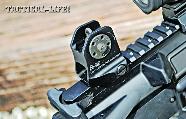 The SSP comes with Daniel Defense’s fixed front and rear iron sights. These sights are manufactured out of aircraft-grade 6061-T6 aluminum and then finished with a mil-spec hardcoat anodizing. The design of the sights minimizes the footprint on the top rail, allowing space for additional accessories. The front sight utilizes a sight post while the rear sight uses an A2 aperture with A1 adjustments. Both the front sight blade and rear sight aperture are protected by wings. These are rugged sights that are designed to withstand hard use. While flip-up sights are the rave, I grew to like the Daniel Defense fixed sights for their clean sight picture and compact design.