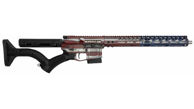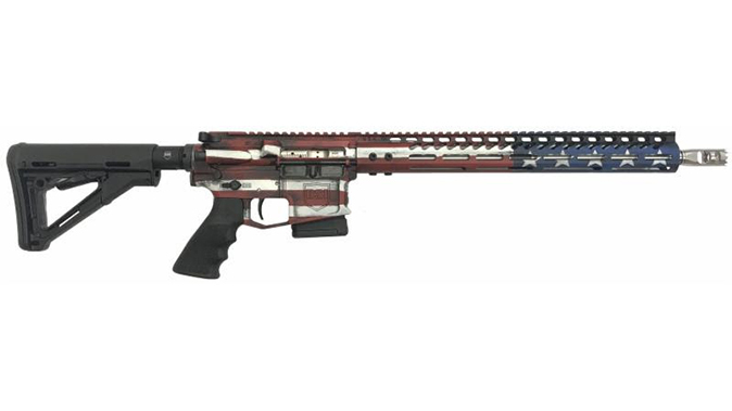 Last year, Dark Storm Industries introduced a limited edition “Signature Series” rifle called the Wildfire. This year, the New York-based company is once again doing a Signature Series rifle. This one takes on a patriotic theme. It’s called the DS-15 Signature Series Freedom Flag Rifle in 5.56.
