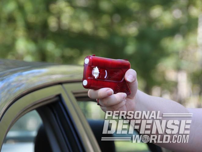 On the flip side, Kimber wants you to know that the spray will be ready when you need it. For this purpose, they’ve added a unique feature to the PepperBlaster II to show whether or not the unit is fully charged. When a unit is fresh and has never been fired, a white stripe is displayed on the side of the trigger. However, if one or both capsules inside have been discharged, the stripe is hidden. In this way you can never mistake an old, used spray for a new one and find yourself defenseless when it counts.