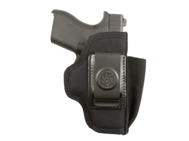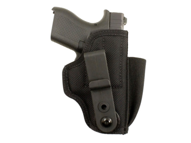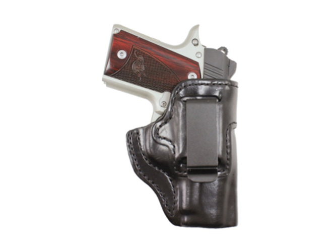 This is a bare-bones minimum IWB holster built from black saddle leather. The precise molded contours provide the weapon retention. The top is reinforced to ease re-holstering and the powder coated spring clip holds it securely to your belt. MSRP is $36.99. For more, visit http://www.desantisholster.com/INSIDE-HEAT.