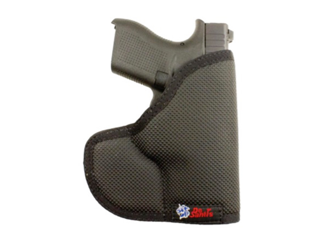 This holster has a new exclusive sticky rubberized fabric is even more viscous than the Nemesis®. We have also added a removable, reversible outer flap to even further disguise the firearm. This pocket holster will absolutely not move out of position in your pocket. The inside is made of slick pack cloth for a low friction draw and is reinforced with added polymer in the right places. Back or front pocket design. MSRP is $39.99. For more, visit http://www.desantisholster.com/SUPER-FLY.
