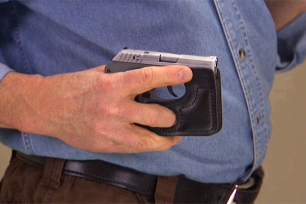 The DeSantisPocket Shot Holster is the latest method to conceal and rapidly access your small auto. The #110 holster disguises itself as a wallet but can be brought into action instantly without removing the handgun. The holster is made of black leather, it’s ambidextrous, and will carry several different 380 and 32 autos. This holster is illegal in the state of California. The Pocket Shot Holster holds the pistol very snug, you can turn it upside down and try to shake it out it holds the pistol tight. The mag release is easily accessible, and the clip easily falls out. MSRP: $41.99