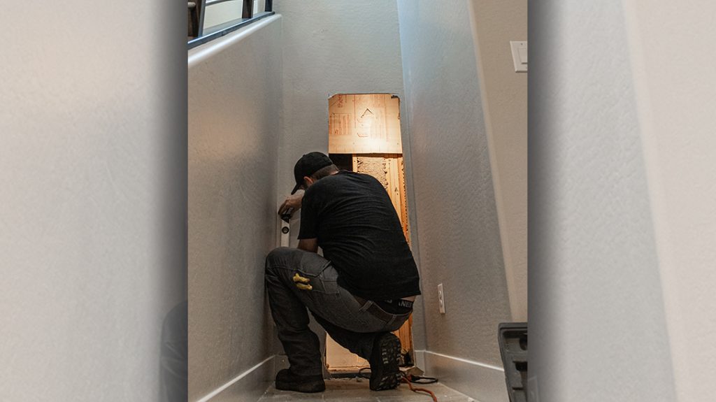 Digging right in, we carefully carved out the drywall with the trusty SawzAll where a hidden flush-mounted Bookcase Door by the mastercrafters at Murphy Door would be inset and serve as the entry point to the chamber. …
