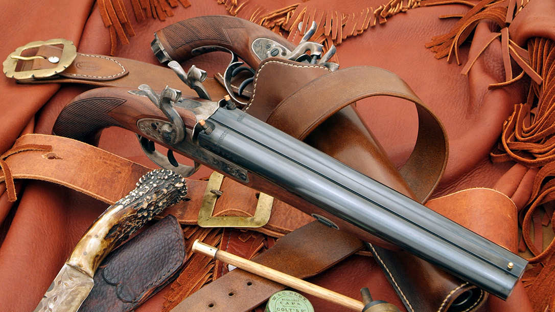 In the American West of the 1820s and 1830s, there weren’t any tigers. However, there were many things frontiersmen encountered that were just as deadly. As a sidearm, a Howdah pistol was impressive, offering a quick second shot in a large and effective caliber. And, as it turns out, the new Howdah is a perfect complement to Pedersoli’s 20-gauge double-barreled flintlock shotgun.