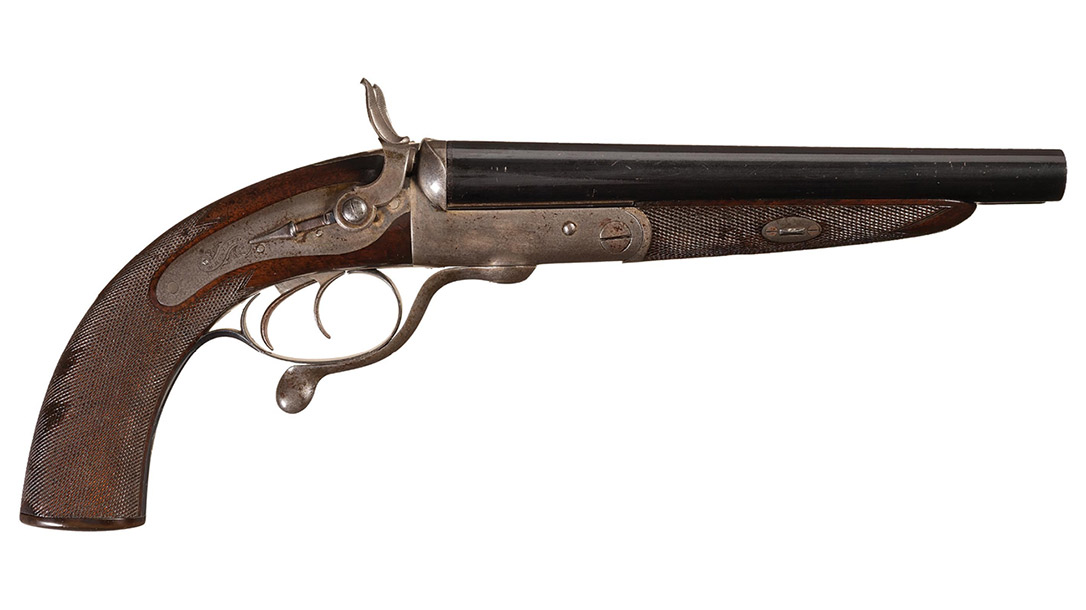 A Howdah pistol, however, is a more elegant sidearm than a shotgun with cut down barrels and stock. The finest modern-day example was the double-barrel percussion 20-gauge and .50-caliber Howdah pistols made by Pedersoli in the last decade.