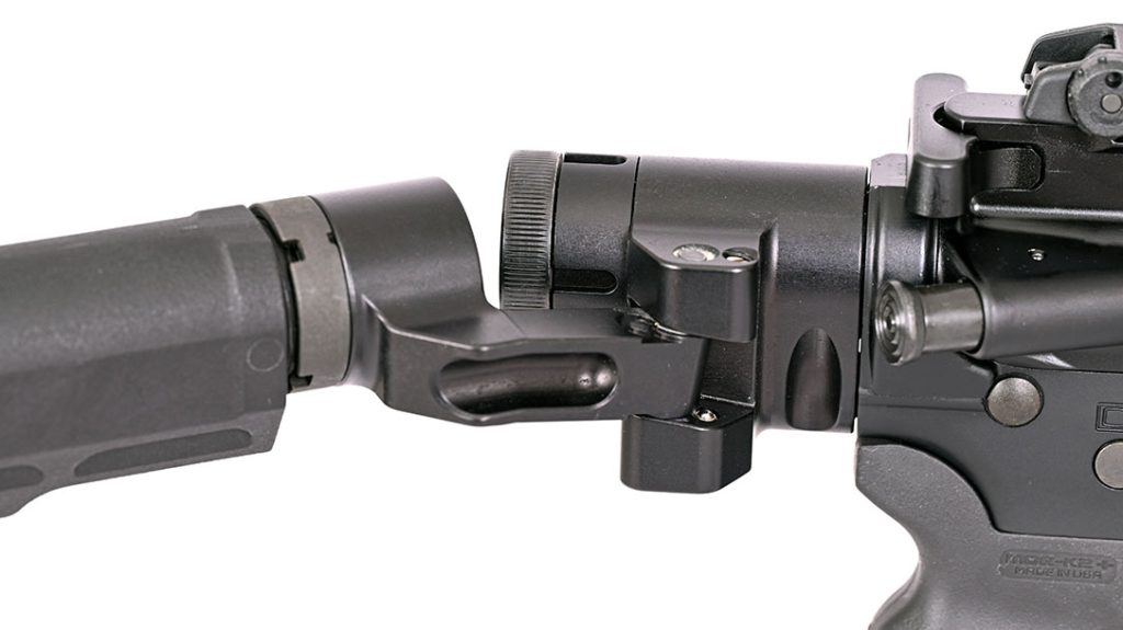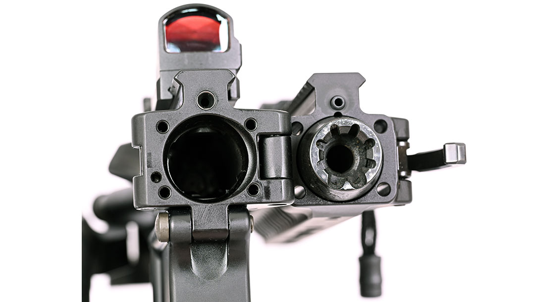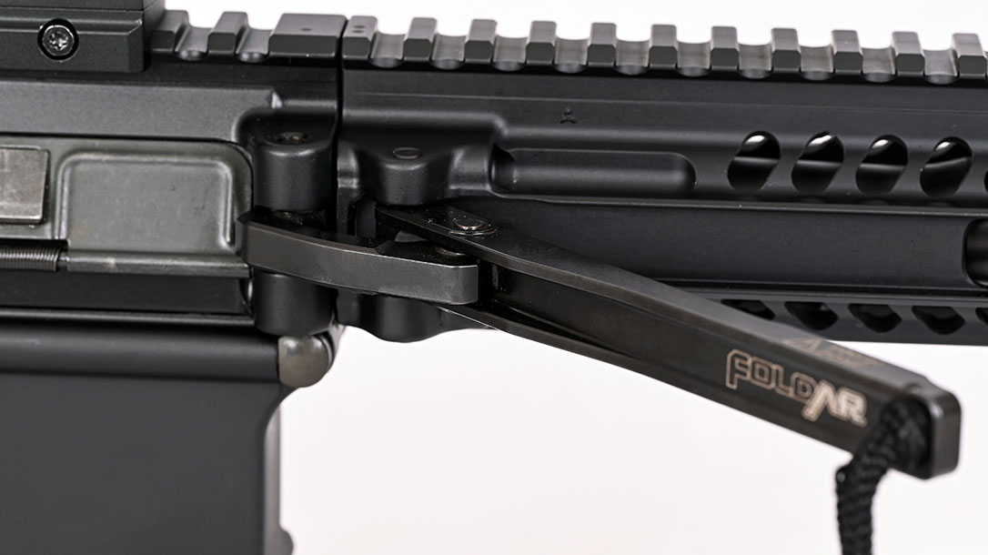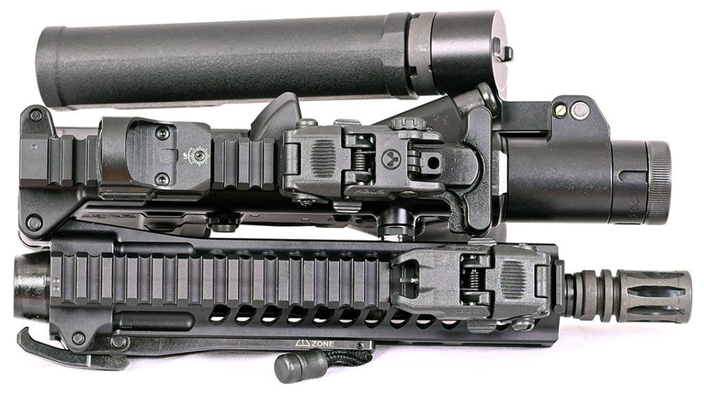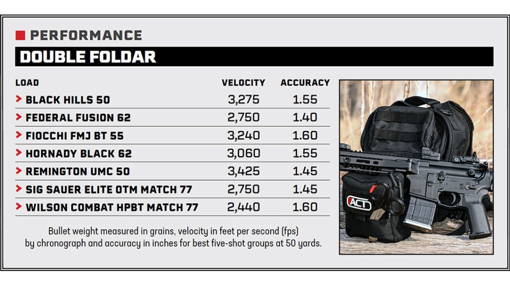 Overall, the Double FoldAR averaged 1.5-inch, five-shot groups from a standing position unsupported at 25 yards. I did push it out to 50 yards with the set of Magpul flip-up MBUS sights with the same results.