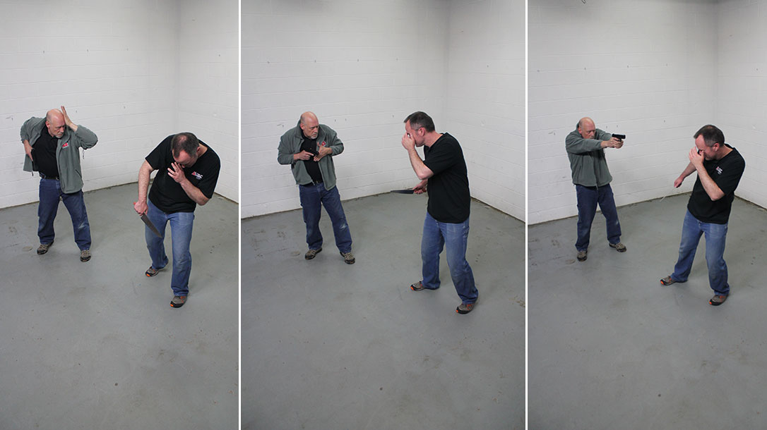Typically, the assailant will not brandish the knife or announce his intent before attacking. Your job is, therefore, to recognize the attack, instantly identify it as a lethal-force threat, draw, and shoot. You also must do all that before the knife makes contact.
