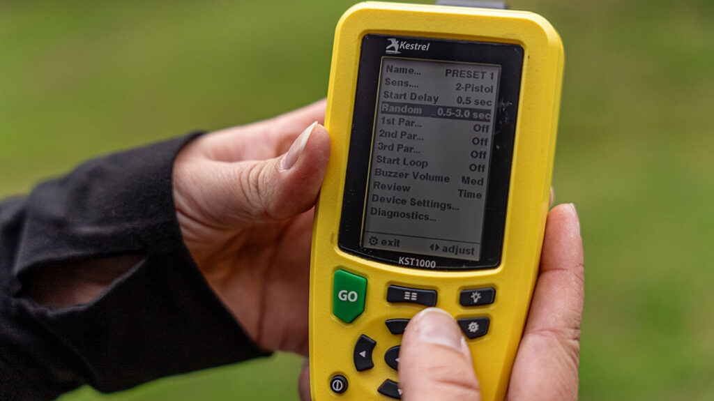A par time is the maximum amount of time you give yourself from the start beep to perform this drill. If my goal is to draw and shoot in under 1.5 seconds, that’s the par time I set. Eventually, you can work yourself up to keeping this par time set in your live-fire practice.