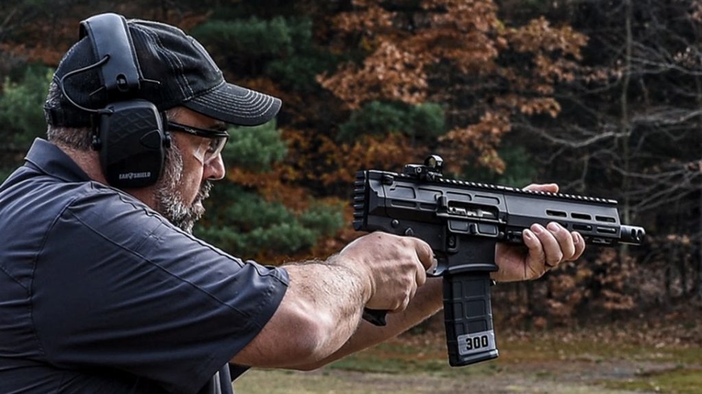 What makes this pistol exceptionally tractable, however, is the two-port muzzle brake at the end of the barrel. This is a rather uncommon addition to a short 300 Blackout platform.