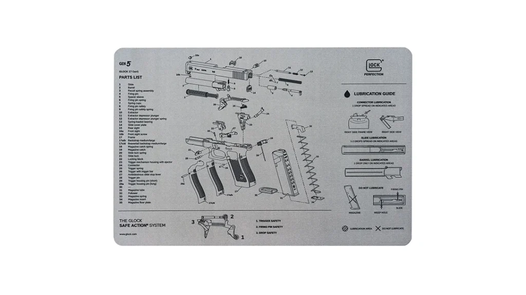 Don’t just break-down and clean your Glock on just anything, you’ll lose parts as well as soil the surface. Instead, incorporate this Glock-centric bench mat. This rubberized accessory allows you to stay organized while you clean your weapon, all the while, keeping random oil smudges on the mat. The surface offers a parts list and detailed diagram for reference and the entire mat rolls up for easy storage when not in use.