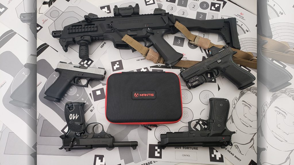 The folks at Mantis have been working to help out with that for a while now. I first ran into them at SHOT Show a few years back with their MantisX training system. This is a device that bolts on a Picatinny rail and works in conjunction with your smartphone to give you feedback on your grip, trigger pull, and other aspects of good marksmanship.