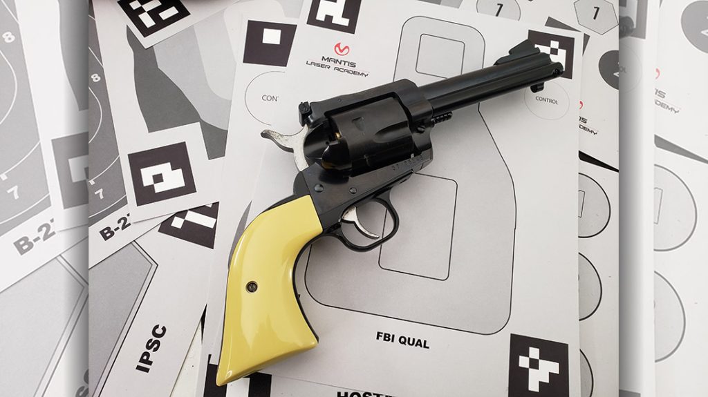 Revolvers work great with this system since they index by either cocking the hammer or stroking the double-action pull. If you really want realistic training, though, you’ll need to buy five or six Pink Rhino cartridges to fill your cylinder. At $39.95 each that can definitely add cost to your dry fire training system. But compared to the price of ammo, it should still pay for itself in short order.