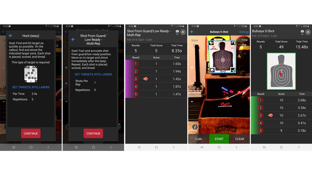 There’s a calibration screen that makes sure your camera can see the target. Once you install the laser in your pistol, just pick a shooting program from the app and it will walk you through it. You’ll see your hits on the phone screen and the app will score you for points and time.