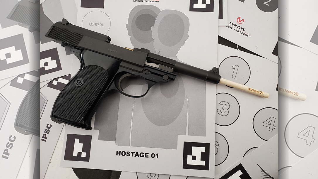 It could be used either as a dry fire trainer or with live ammo on the range. It’s a great learning tool. Well, the latest product from Mantis, the Mantis Laser Academy, takes things a step further.