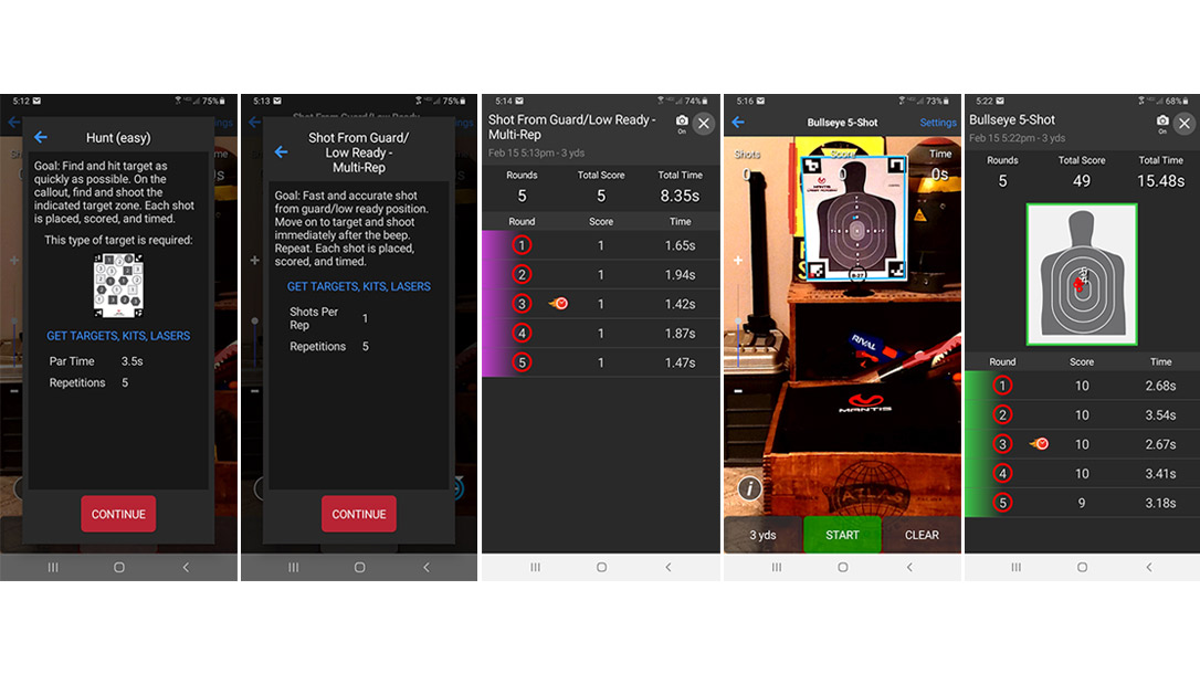 Mantis provides you with a good number of training options on the Laser Academy app. There are basic bullseye courses, ones that time you from low ready or from the holster, and a variety of dueling programs you can do with a friend if you both have the gear. The options are as follows: