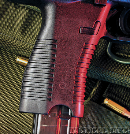 Loading the 15, and 30-round magazines was as smooth as any high-cap pistol, though the magazines don’t drop free as we’d prefer. (The release does spring the magazines out to half an inch.) The magazine well is relieved on the sides to facilitate quick removal and allow them to be pried free if they became stuck.