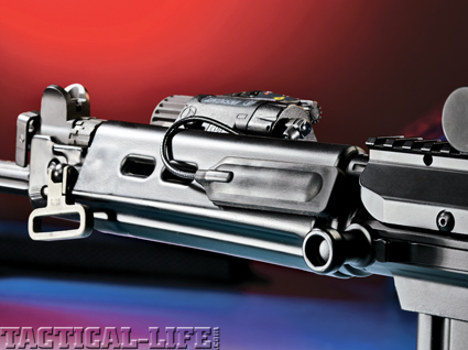 The receiver on the sample rifle was a Type I, and it was fitted with another of DS Arms’ innovations—the Extreme Duty Scope Mount. FALs, due to their removable top cover design, do not have an enviable reputation for working well with scopes. Further agitating this was the fact that on folding stock variants, you had to remove a mounted scope to disassemble the rifle. Needless to say, maintaining a zero would be an effort in frustration. The aluminum Extreme Duty Scope Mount sidesteps these issues by allowing the Para’s guide rod and spring to be removed while the scope mount/top cover remains on the rifle. The result is a rock-solid strip of Picatinny rail along the top of the rifle that remains in place during disassembly.