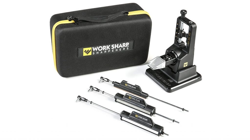 Stay sharp by keeping your knives sharp with the Work Sharp Precision Adjust Elite Knife Sharpener. This knife sharpener is an angle-adjustable knife system that gives precision and repeatability to anyone looking to take care of their knives. The sharpening angles can be adjusted from 15 degrees to 30 degrees in 1-degree increments and will sharpen kitchen, outdoor, and EDC knives. It also includes 220, 320, 400, 600 & 800 grit diamond plates, ceramic plates, a leather strop, and a ceramic rod for serrations in this knife sharpener system. And do not worry about keeping everything organized and safely stored, this system also includes a carry case and Tri-Brasive storage rack to keep your belongings together.