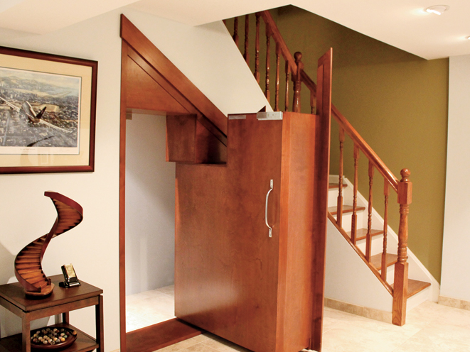 On my tour of the company’s design center, I got a firsthand look at how bookcases and dressers were able to conceal doorways and hiding spaces at the touch of a button. The mechanisms to activate the doors were artfully hidden in features around the room.