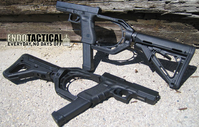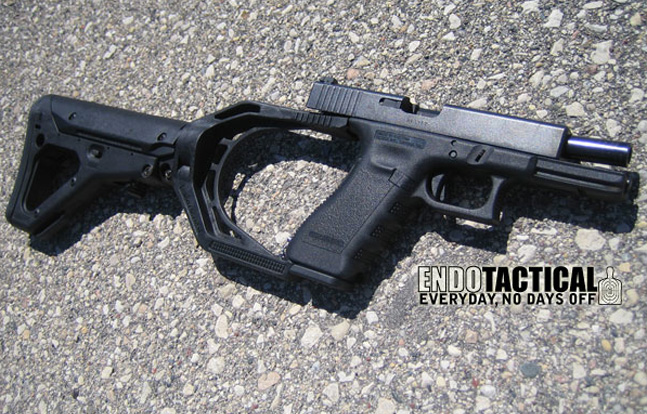 The Endo Tactical Stock Adapter for the Glock is an innovative product which enables the end-user to attach a Glock to an AR-15/M16/M4 stock. Scroll down to watch a video for more information.