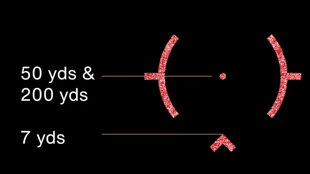 The DCR HWS Reticle is a modification of the popular “speed ring” circle/dot reticle but addresses the point of aim (POA), point of impact (POI) shift that occurs with close engagements when the primary dot is zeroed at distance. The 68MOA circle width is maintained but the top of the circle is removed providing a cleaner look. The bottom of the ring is also removed and replaced with an easy to find chevron providing that height over bore adjustment needed for dangerously close shots. With a .223/5.56 rifle zeroed at 50 yards, the DCR would provide three confident aiming points to include a long distance 200-yard zero as well as a 7-yard solution. For speed and accuracy at any distance, consider the EXPS3-DCR TAN.