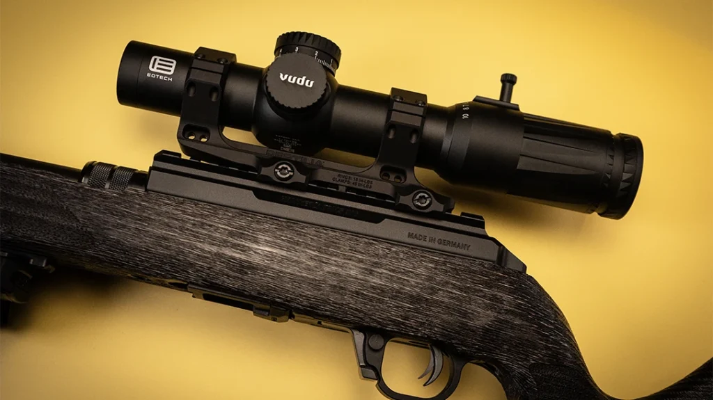 The EOTech VUDU 1-10×28 FFP daylight-bright LPVO has earned a place on my list of recommendations, and I’m not quick to hand those out. This riflescope has many positive attributes. There’s the SR-5 reticle, the daylight-bright illumination and the rock-solid mechanical feel throughout. It’s why I think the Vudu Daylight LPVO delivers a complete and capable system that belongs on serious rifles.