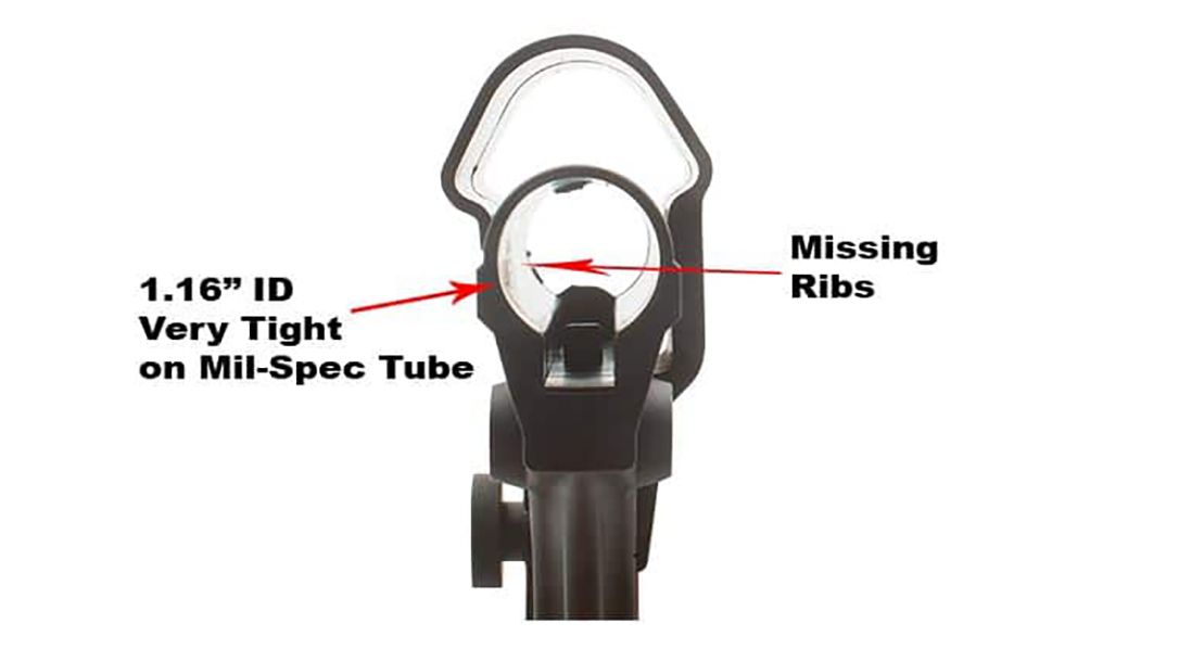 - No internal support ribs (4) on the inside of the buffer tube hole