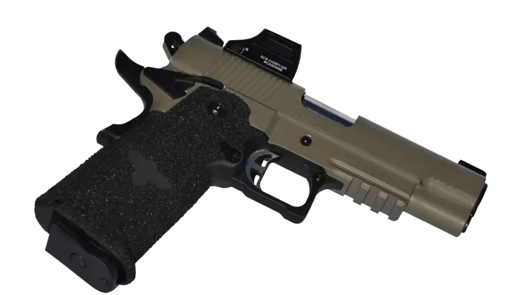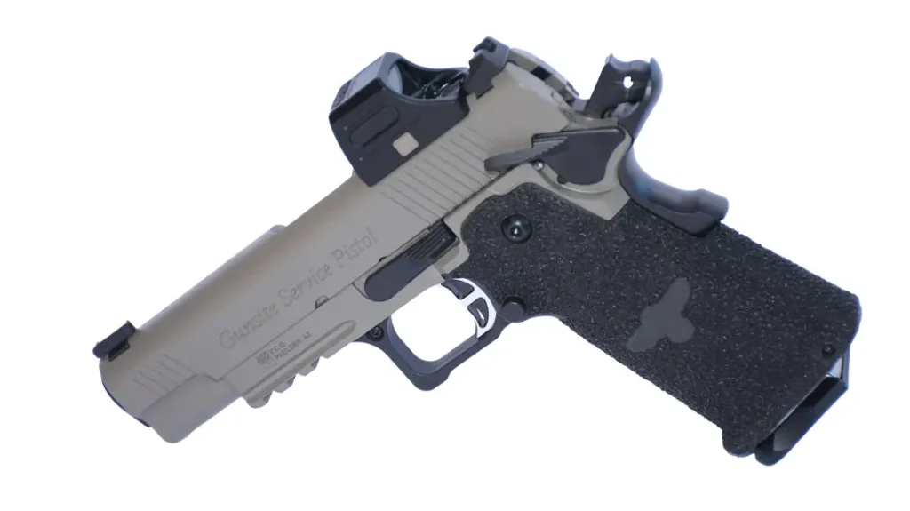While polymer striker fired guns are undoubtedly popular, the 1911 style pistol has its own unique charm. The classic 1911 trigger and smooth action make custom 1911’s accurate and easy to shoot. The FCG Gunsite 1911 double stack embodies all these qualities, making it a truly exceptional piece.