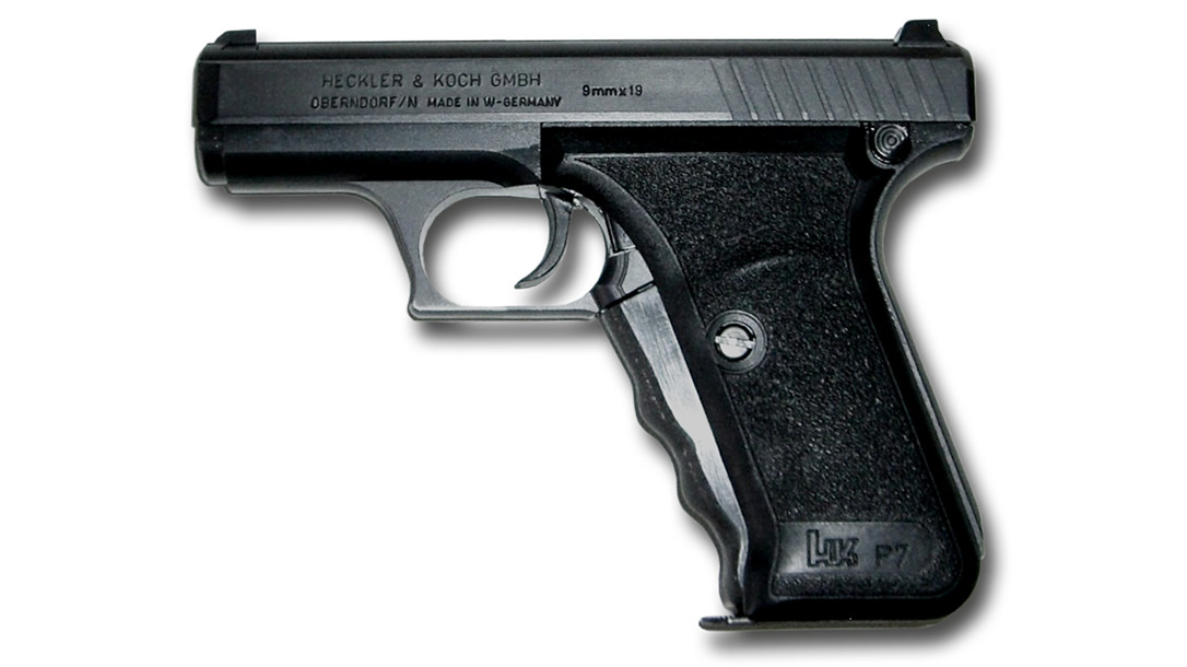 A little newer on the list is the striker-fired HK P7, chambered in 9MM. Produced between 1979 and 2008 the P7 received favored status with the German police. As a result, they used it to replace the .32 ACP Walther PP. It beat out the SIG Sauer P225 and the Walther P5. Shortly after its inception, the German Federal Police counter-terrorism unit and German Army special forces formations adopted it.