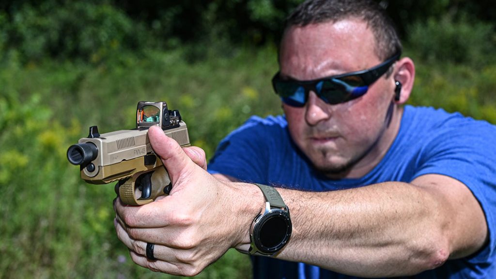 FN made the pistol 100 percent ambidextrous as well. You don’t have to pull out tools and flip your controls to the other side to accommodate southpaws because the gun has regular-size controls on both sides of the frame.