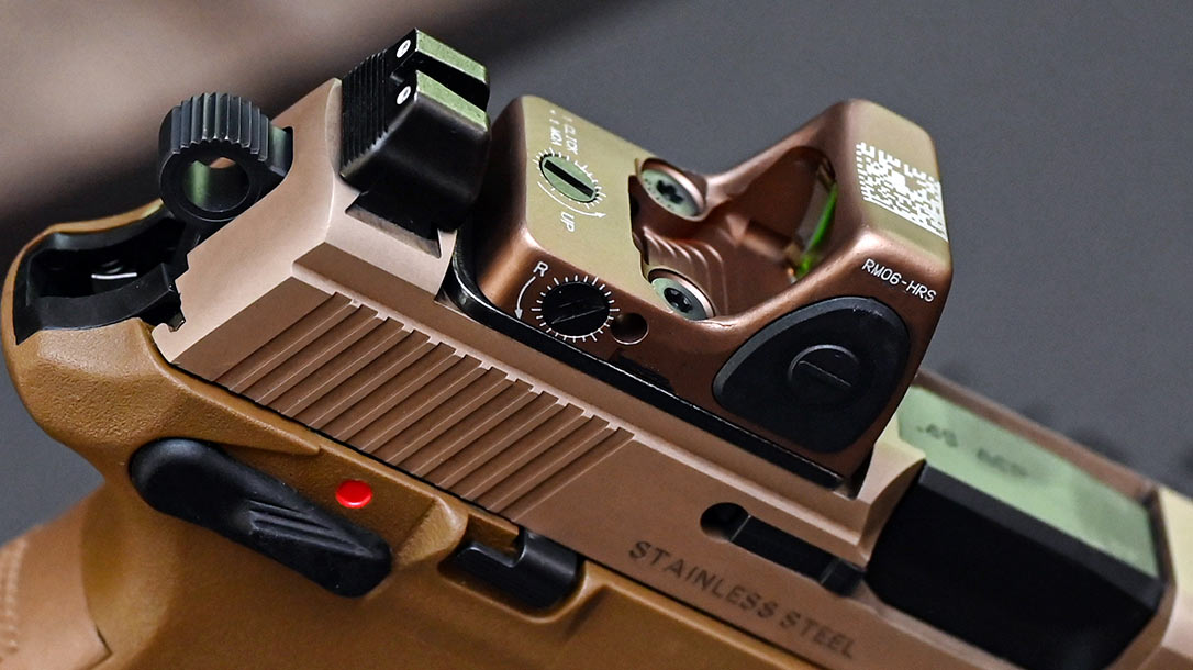 If you are a fan of red-dot sights, you will be happy to find the top of the slide is cut for a red-dot plate. FN includes two mounting plates in the package, which allow you to attach anything with a Trijicon RMR footprint or Docter optic footprint.
