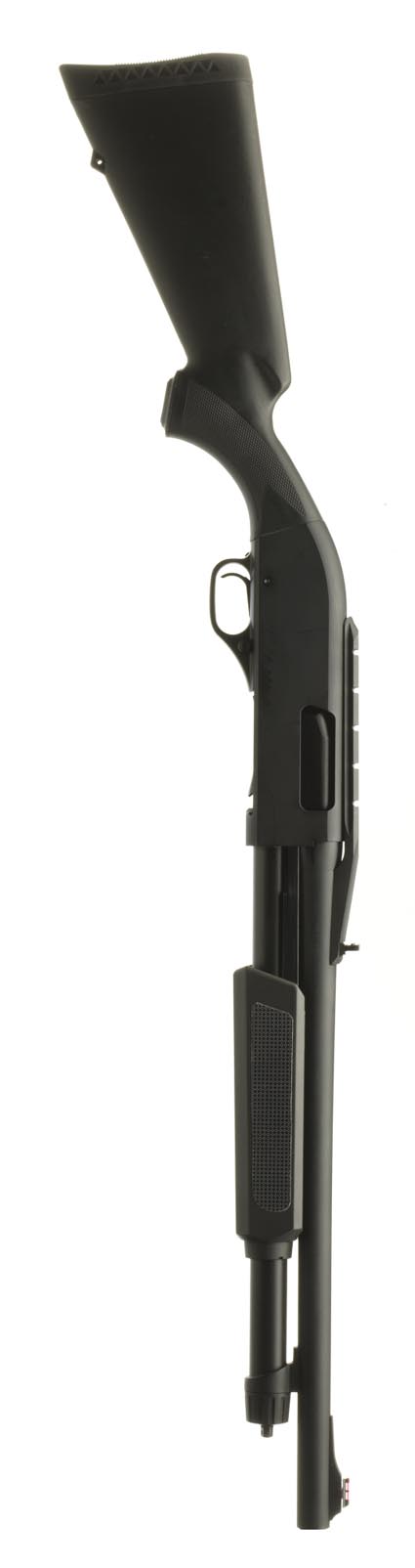 The FN P-12, assembled in FN’s Viana, Portugal facility like the SLP, sports a 5+1 round capacity and premium matte black finish over anodized aluminum. At 18 inches in length, the Belgium-made cantilever barrel is fully chrome-lined for long life and added corrosion resistance. The barrel is factory installed with an Improved Cylinder™ stainless steel choke tube. Interchangeable Standard Invector™ choke tubes are offered as accessories.