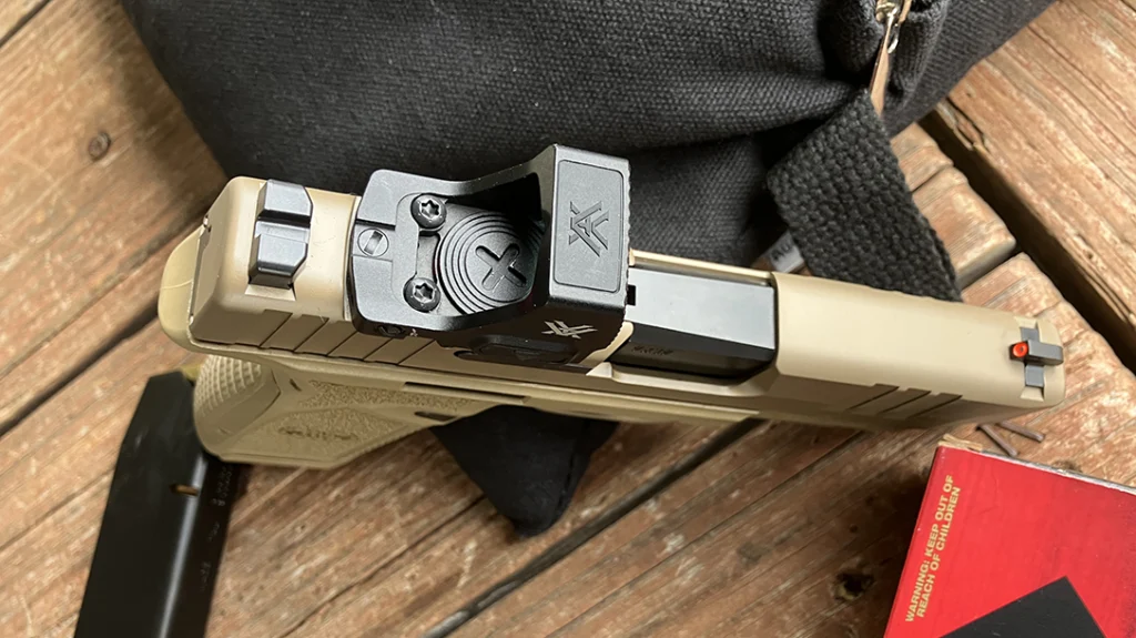 The FN MRD concept seeks to answer how best to enhance the handgun. The solution arrived at was the same as most had already opted for with their rifles; add a red dot sight. The Reflex XL arrives with an optics-ready slide compatible with micro red dot optics that share the Shield RMSc or Holosun 507K footprint. A Vortex Defender-CCW red dot was mounted on the FN Reflex XL for this test.