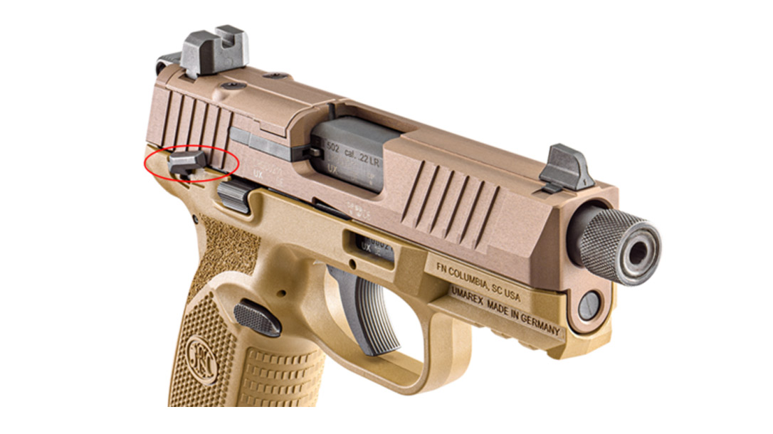 At issue is a limited number of FN 502 Tactical pistols that may have an improperly installed manual safety. As a result, the external safety lever will not function properly and may result in unintended firing when engaged.